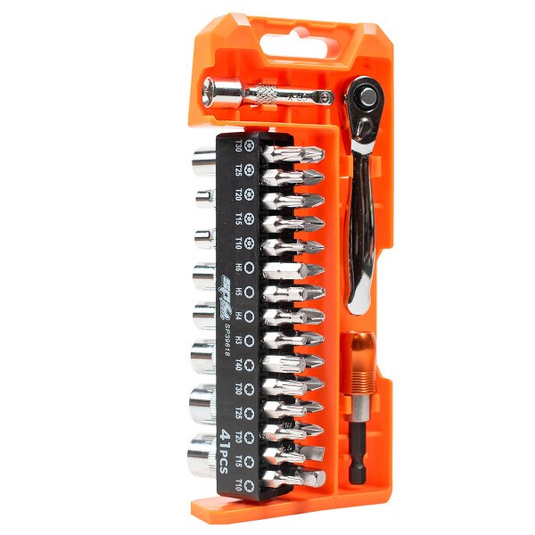 41PC RATCHET, SOCKET, AND BIT SET